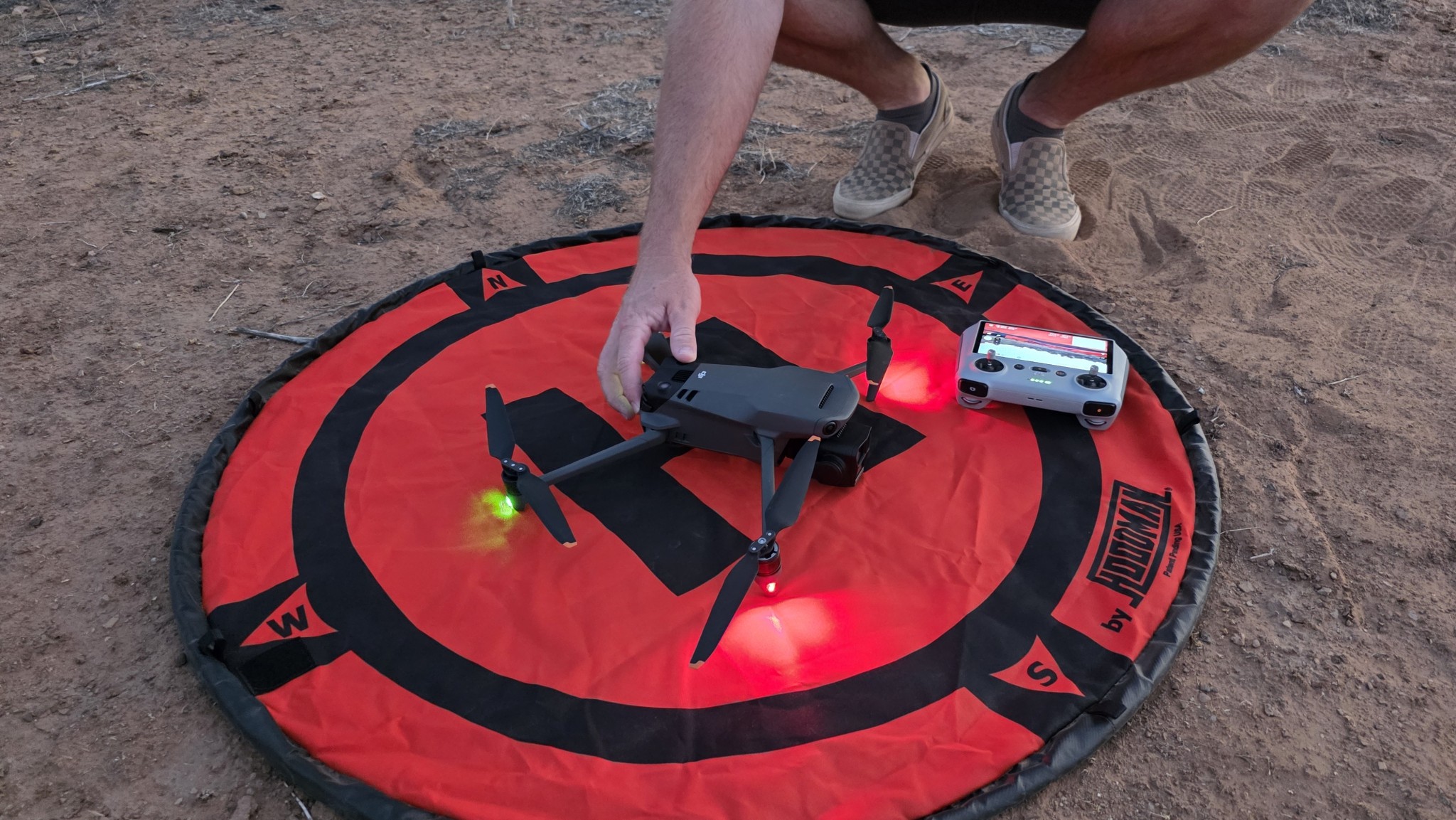 An important feature of a drone's usability is how accurately the return-to-home feature works. The DJI Mavic 3 Pro was a top performer in this test, landing less than three inches away from where it took off. One thing that we found strange about the Mavic 3 Pro is that the drone must be powered on in order to access its storage when connected to a computer, whereas every other DJI drone in our test group's storage can be accessed without needing to be powered on. This is an important distinction, as we believe it makes the Mavic 3 Pro more prone to damage, since you must remember to remove the gimbal protection before powering it on to prevent damage.
