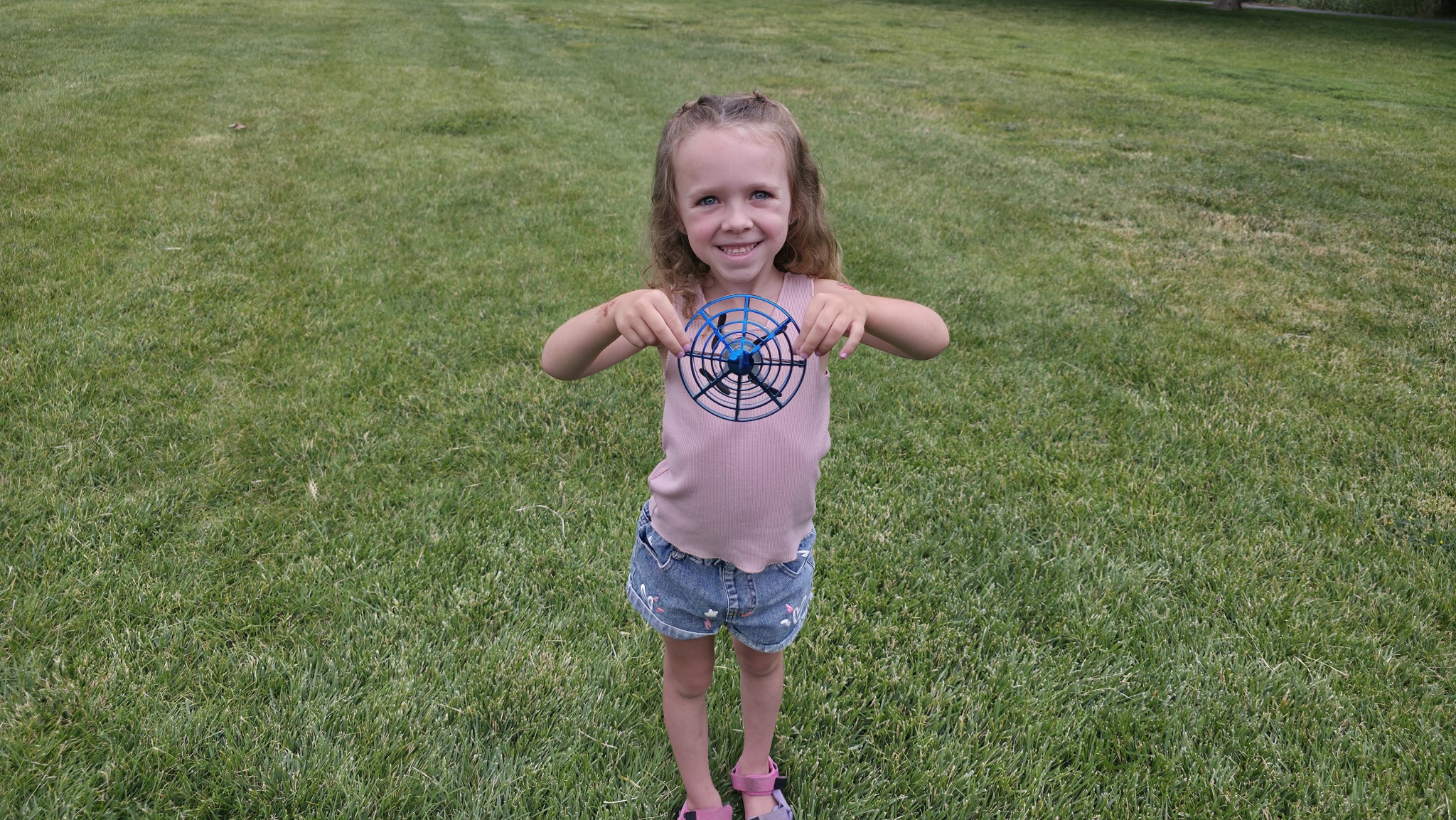 When it comes to usability, the Force1 Scoot Toy is the only drone in our testing lineup that doesn't have a removable battery, which is quite inconvenient and limits its use, especially because the battery life of the Scoot is only eight minutes. The included charging cable is really short and awkward to use, with the charging port being in a tough spot to access. It does come with four spare propellers in case yours get damaged, and fairly helpful instructions to get it up in the air. The entire body of the Scoot functions as a propeller guard, but small fingers might still be able to contact the propellers, and children, especially, should exercise caution when grabbing the Scoot while in flight. The sensors of the Scoot are not very responsive, but if you put your hands on the sides of it until the light turns blue, you can make it flip by swiping your hand underneath. It's best to attempt the flip while the Scoot has some altitude, as it drops quite a bit when performing the flip.