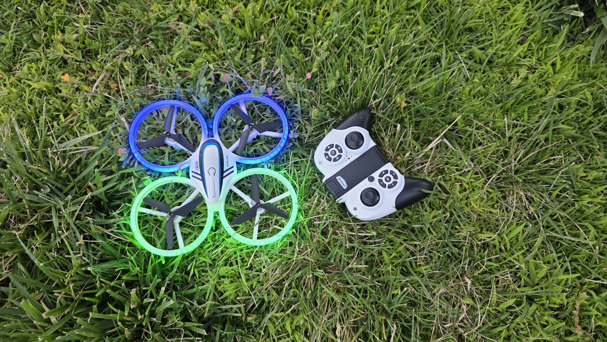 To get the HASAKEE Q9s RC ready to fly, you'll need three AAA batteries for the controller and to charge at least one of the two included rechargeable batteries. It conveniently comes with a tiny screwdriver to remove the cover to insert the battery. Unfortunately, the controller of the Q9s is the cheapest-feeling among our entire test group, with buttons that are difficult to press, poorly labeled controls, and an overall low-quality feel. None of this comes as a real surprise, given the price of the Q9s. Once charged up, getting the Q9s in the air is easy once you figure out what the buttons on the controller do. Although it struggles to hover in place, it's enjoyable to fly with its vibrant LED lights and three different speed modes that help build your confidence slowly and eventually work up to performing flips and spins. The Q9s is quite durable, has circular propeller guards, and comes with four extra propellers in the event that you damage one.