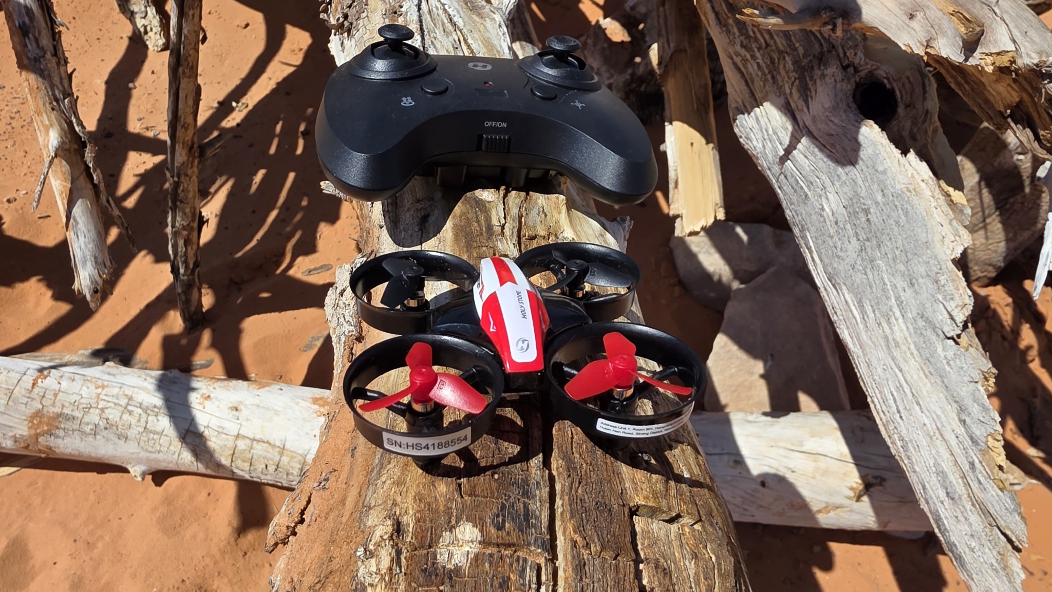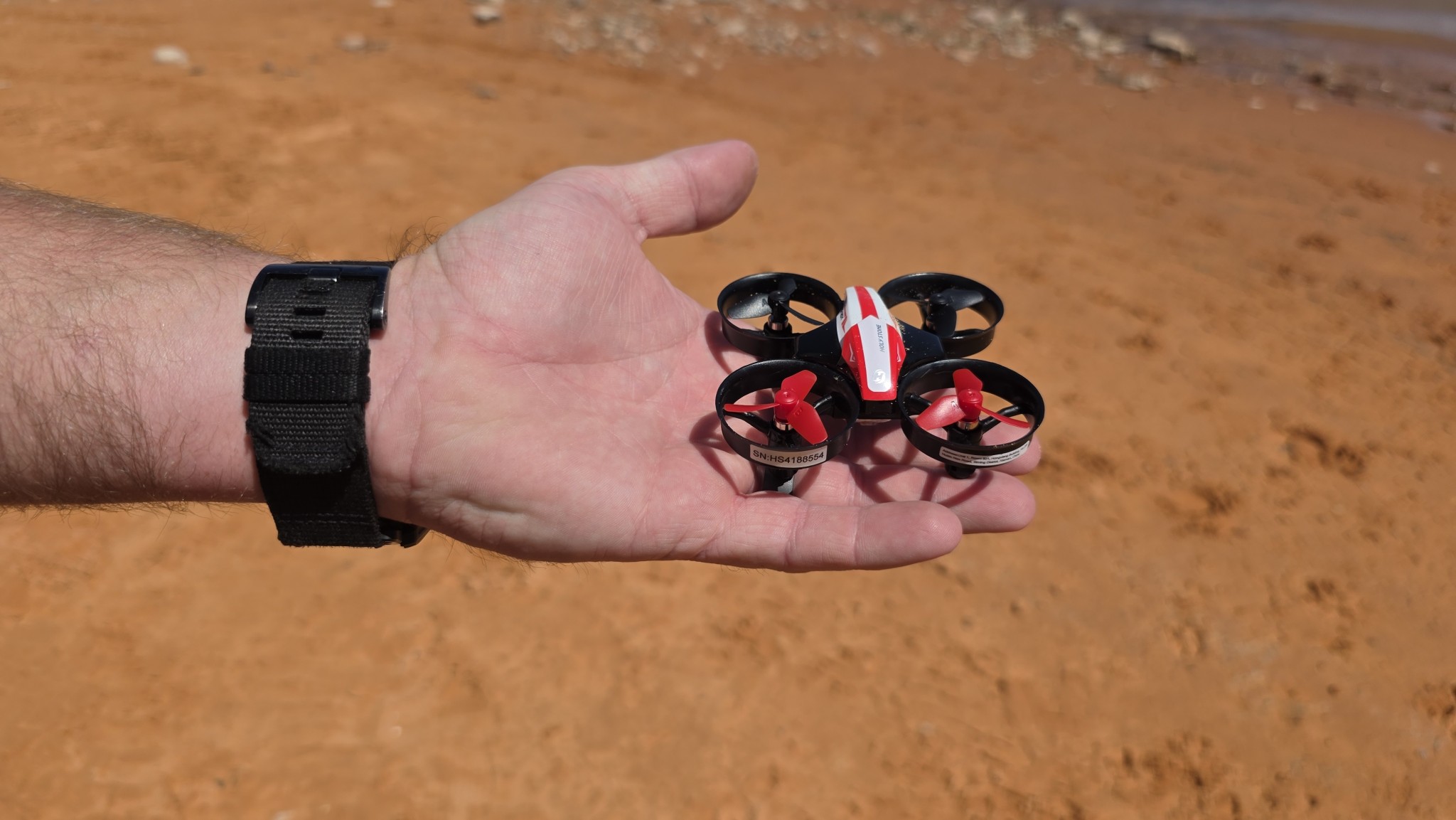 Measuring four inches diagonally, the Holystone HS210 is the smallest drone in our test group, and it feels small when held in the palm of your hand. It only weighs 24 grams and is very easy to transport in your pocket or really anywhere that you can fit it, along with its controller. No case is included with the HS210, but it's not really necessary since the propellers are entirely surrounded by plastic guards, and the drone itself is quite resilient to superficial damage.