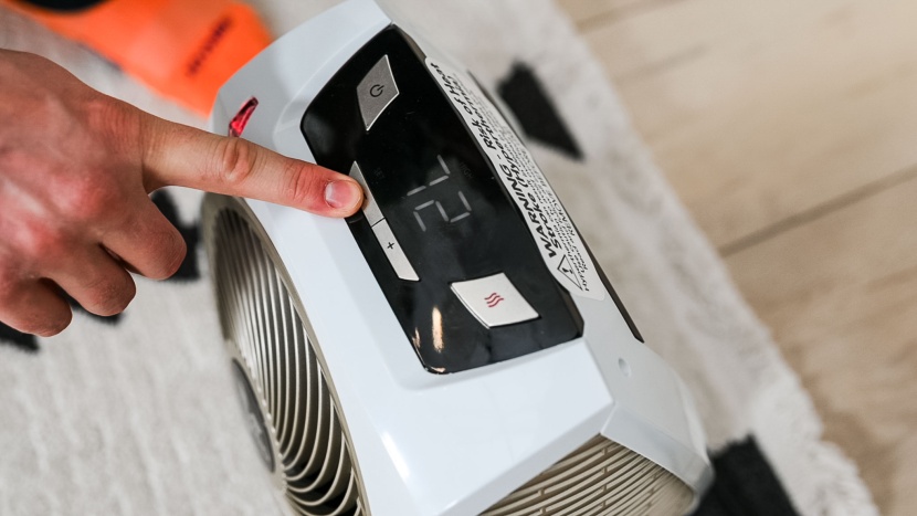 During our in-house test, the Vornado had our temperature sensors registering an 8-degree temperature increase over 65 minutes. Its simple power, temp, and fan-only setting allows for supreme control, while the LED room temperature display keeps you up to date with your climate at a glance.