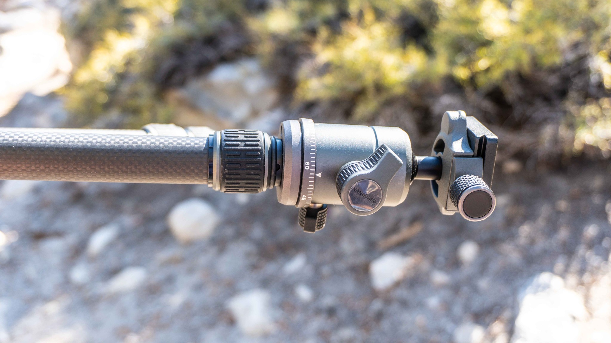 The VEO 3GO 235CB uses a twist lock system to adjust its legs and the center column. With a uniform rubberized grip, these were easy to turn, even when wet or snowy, and we could still twist them with gloves on. Some of the travel-focused models we tested skimped on the tripod head, but the 235 has a T-50 ball head that boasts incredible performance despite its smaller locks. For a travel tripod, this is very feature-rich, but it doesn't have a multi-angled center column if you need to further tweak the shot. Fortunately, Vanguard designed this so the center column is at least reversible when you need to get your camera close to the ground.