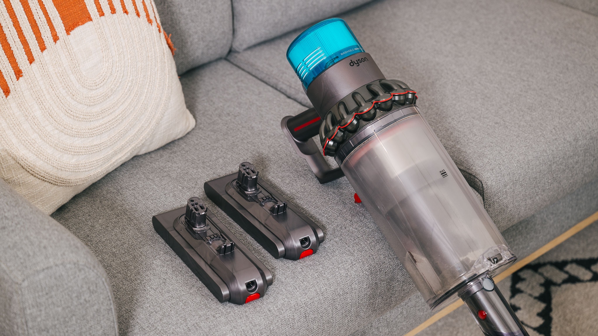 Most cordless stick vacuums only come equipped with one battery pack, meaning that you might have to re-charge the unit in between max-suction cleaning sessions or if you have a larger house. However, the Dyson Gen5outsize comes with two battery packs, making large-scale vacuuming projects a cinch. Our testers found that, when using both batteries, this model can run for an impressive 130 minutes on its lowest setting, or 15 minutes on its highest setting.