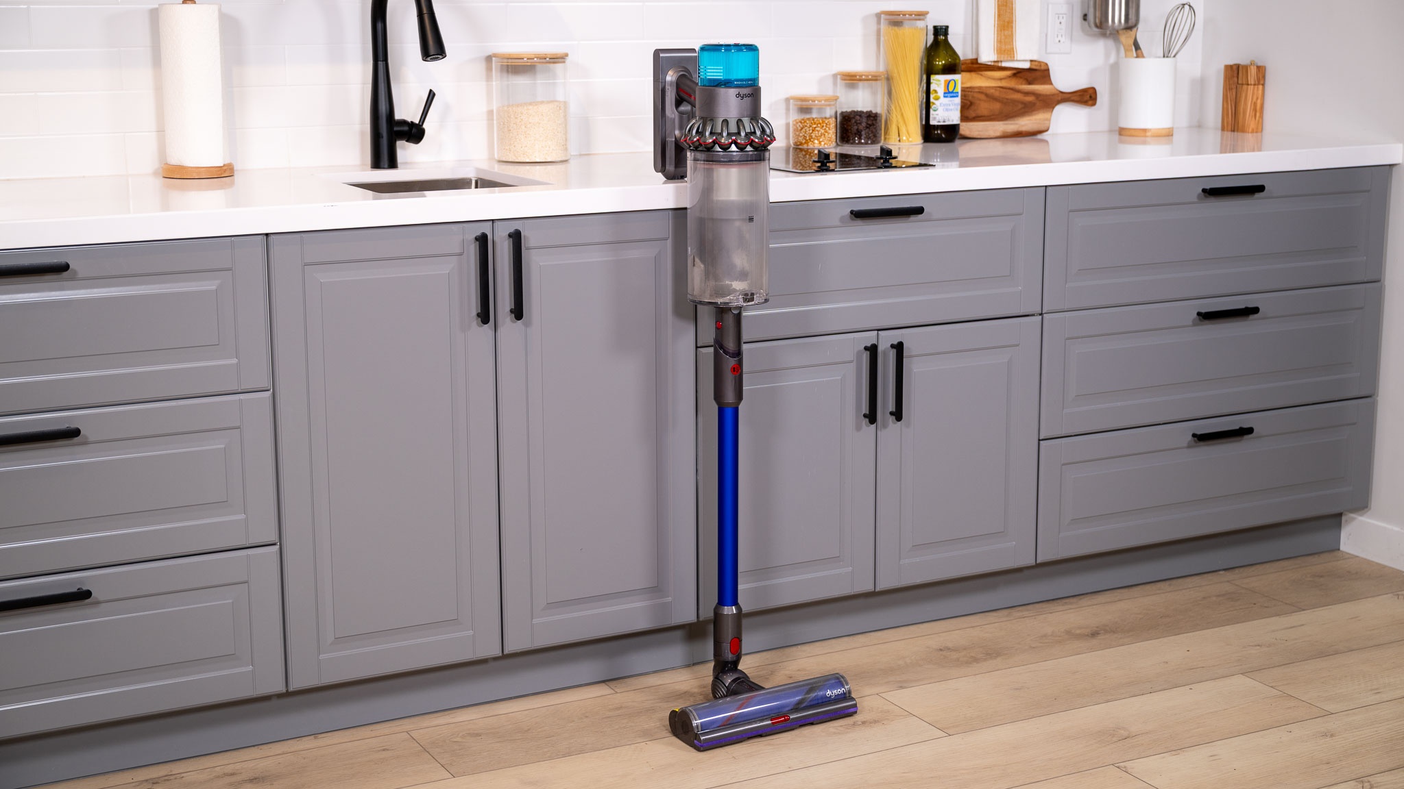We loved this vacuum for its powerful, accurate performance across a variety of hardwood floors. The Dyson Gen5outsize was easily able to pick up all of the Cheerios, rice, and sand grains in a minuscule amount of time in a controlled environment. In fact, we measured its cleanup to be an impessive 99%!
