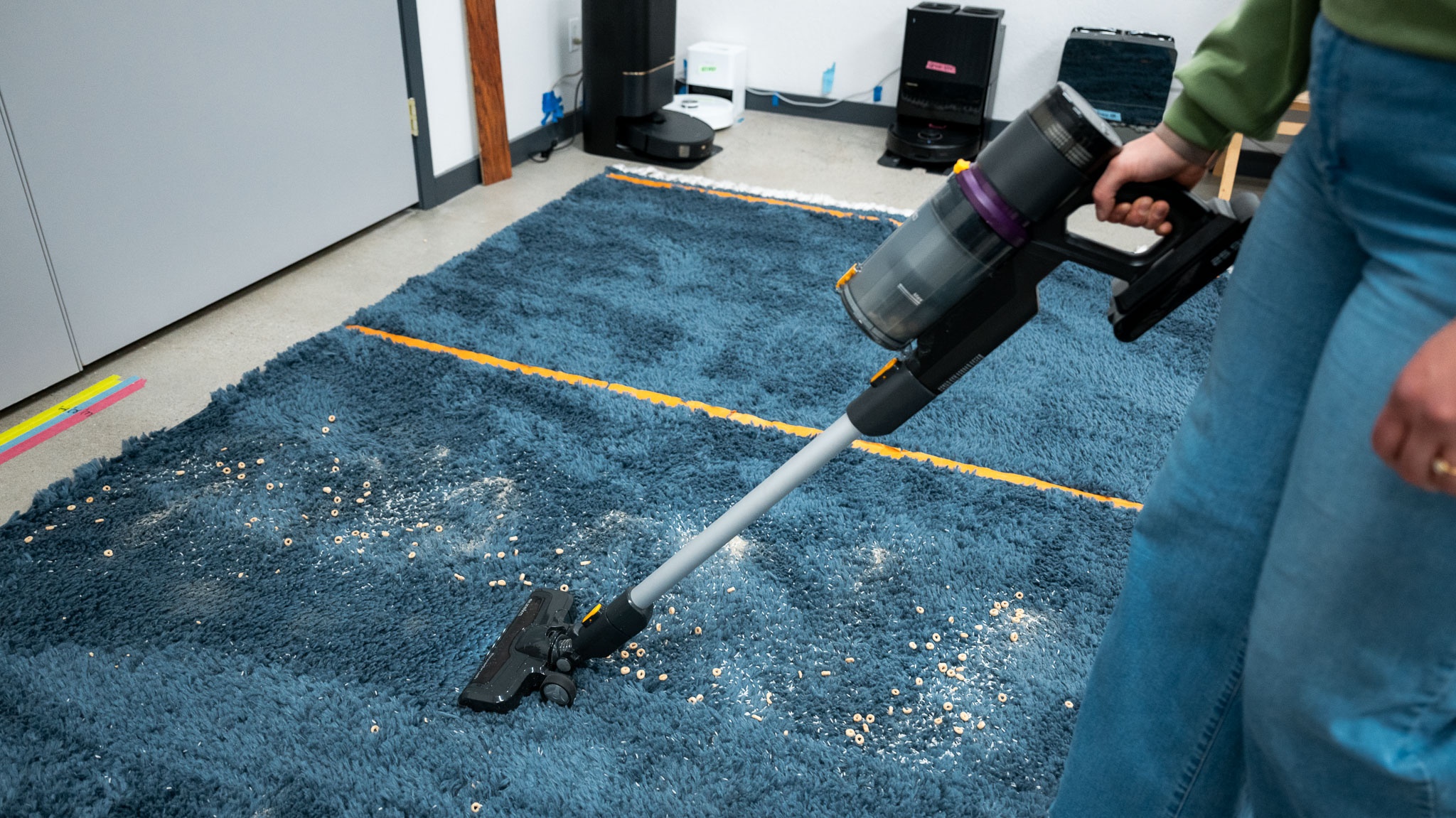 One of the places where the Eureka Cordless ReactiClean 410 failed to differentiate itself from the pack was in its performance picking up our test-perfected blend of Cheerios, rice, and sand from low and high pile carpet. A smattering of rice and sand was left behind after the 24-second timed test window, but our lead tester felt that the vacuum was so lightweight that it would have been easy to fully suck up the mess in another quick pass or two, with little annoyance.