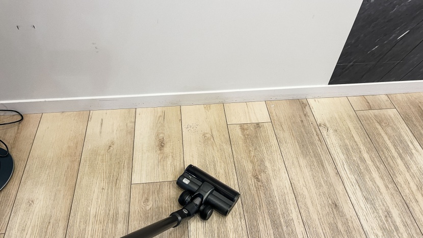 Again, this vacuum kept delighting our editors with its solid performance. This test shows that its head design lets it suck beyond its borders fairly well, letting us clean small nooks and long hallways next to walls. For those with a mix of hard floors and low-pile carpet and rugs, it'll be hard to go wrong with this stick vacuum.