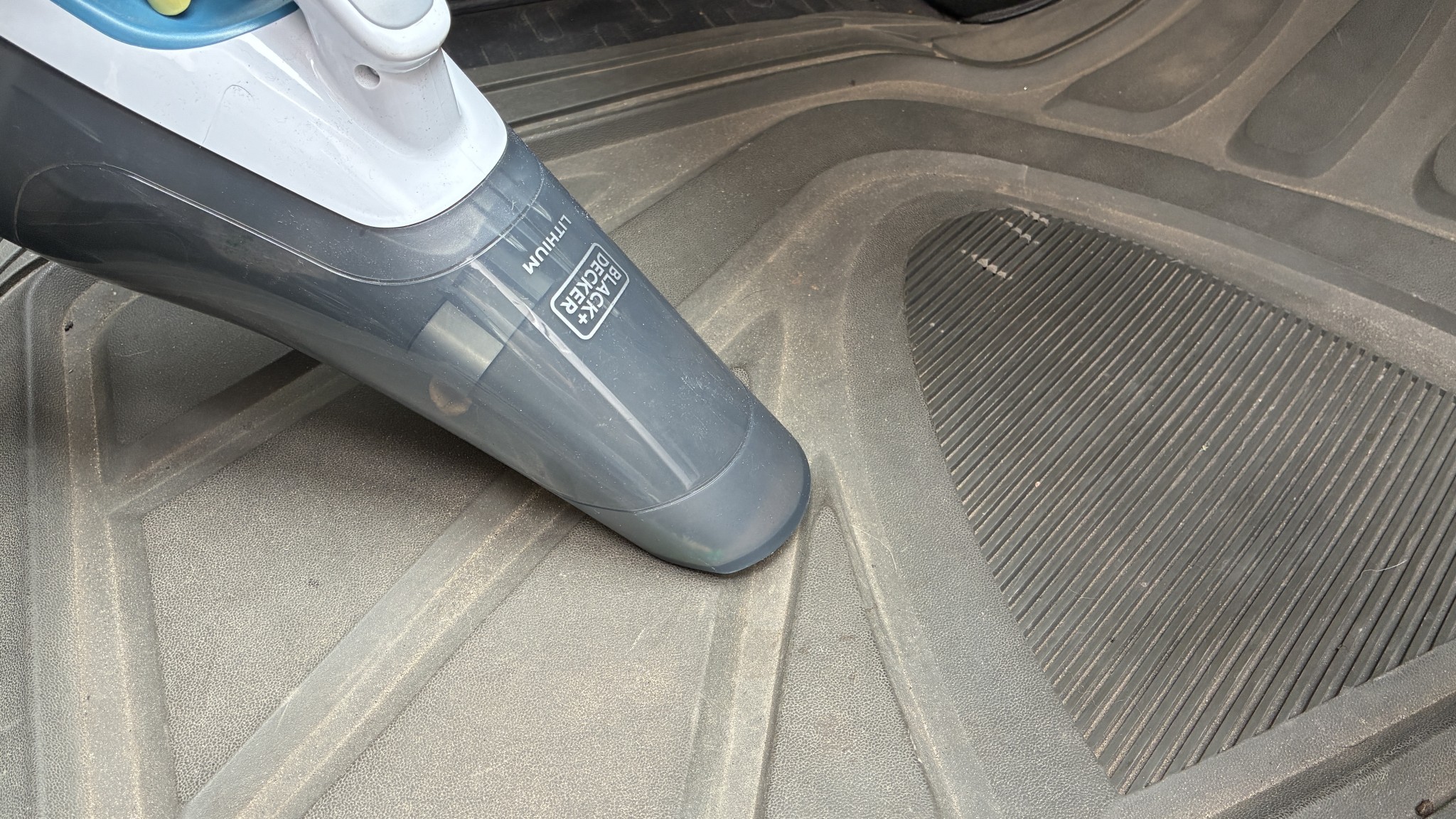 It has decent suction strength for such a compact handheld, where we could see it lift dirt from hard surfaces just by getting close to the pile. The dustbuster crevice tool was able to remove nearly everything from the grooves of a rubber car mat, fitting into the narrow sections and sitting flush with the bottom for the best possible results.