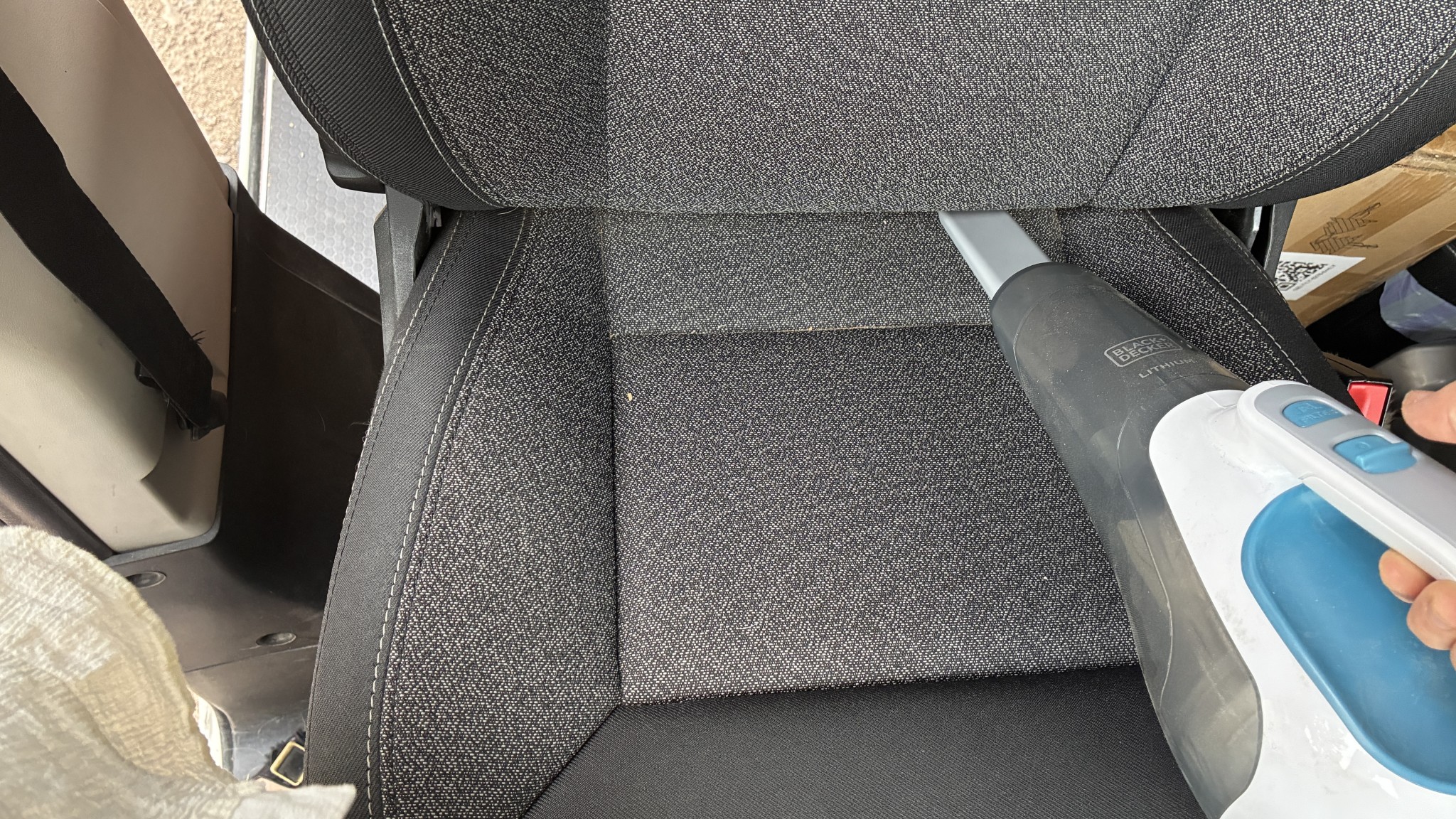 On upholstery and carpet, it takes a few passes to remove all the debris, and the finest dust can sometimes leave a faint haze on the surface. This vacuum doesn't include a motorized attachment, which would normally provide the agitation needed to pull out embedded dirt. Instead, you'll need to press down firmly with the brush attachment and scrub back and forth to loosen what's stuck. It works, but it requires extra time and energy, and even then a light haze may remain. These trade-offs are common at this price point, but overall, it does a good job of cleaning the majority of everyday messes.