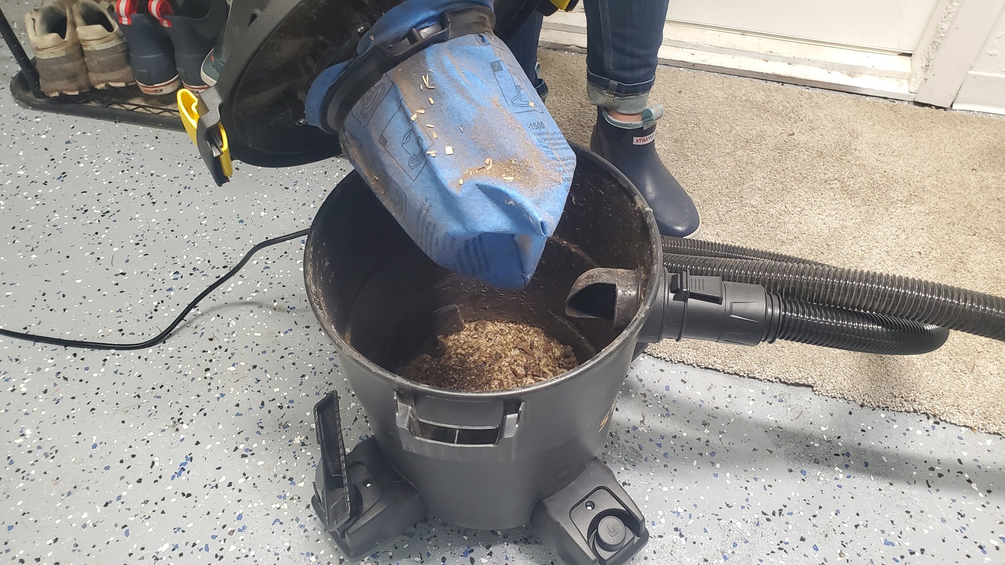 The small yet powerful motor gives it great lift, and it was able to pick up more dense objects like bolts, gravel, and small rocks. The suction power was overwhelmed only when the opening of the hose was fully submerged in thick woodchips and bark debris. Only then did it start to bog down and clog. Primarily limited by its relatively narrow hose diameter of 1.25 inches, the Stanley is best suited for medium to smaller messes. But for most projects, the Stanley has plenty of power to pick up whatever mess you may encounter.
