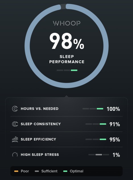 While the Forerunner is certainly consistent with your sleep scores, we also found it lower on average than other trackers on the same night's sleep. One of our testers noted, “My weekly average sleep score on my Forerunner was a 73, but on the Whoop for the same seven nights it was 91. On their own, either sounded plausible, but comparing the two, I felt the truth was probably on the higher end of the spectrum”. We've read many people's comments that Garmin sleep scores are low, and while we didn't find them wholly inaccurate, they were typically lower than other trackers. Most importantly, though, Garmin is at least consistent with its scoring, so you can adjust to whatever curve it applies.