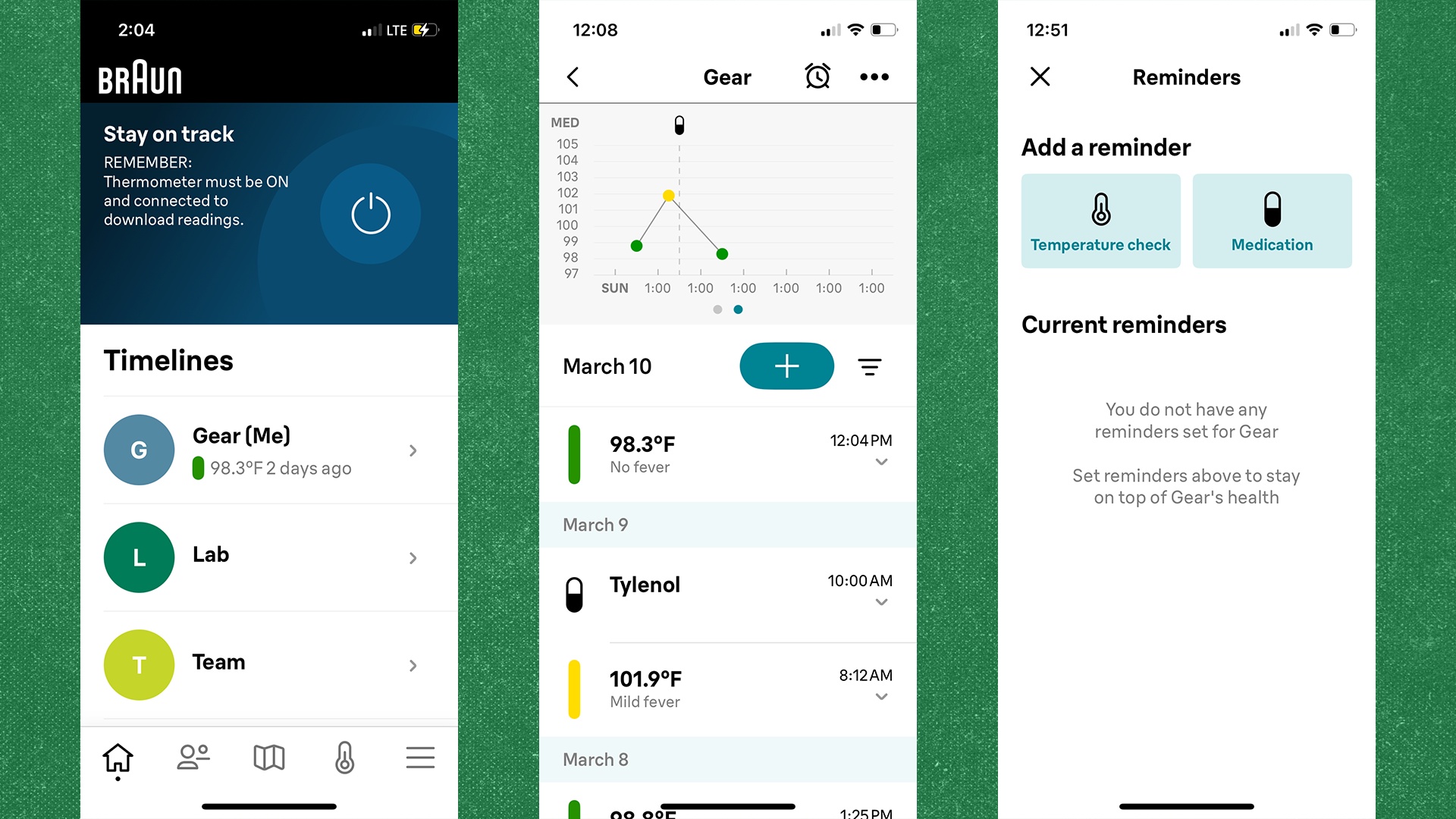 The Braun app is the main reason you'd consider this thermometer, and worth the investment if you need a convenient, reliable way to monitor everyone's health in your household. It stores an unlimited number of readings, is very easy to navigate, and tracks temperature trends, symptoms, and medications for multiple users.