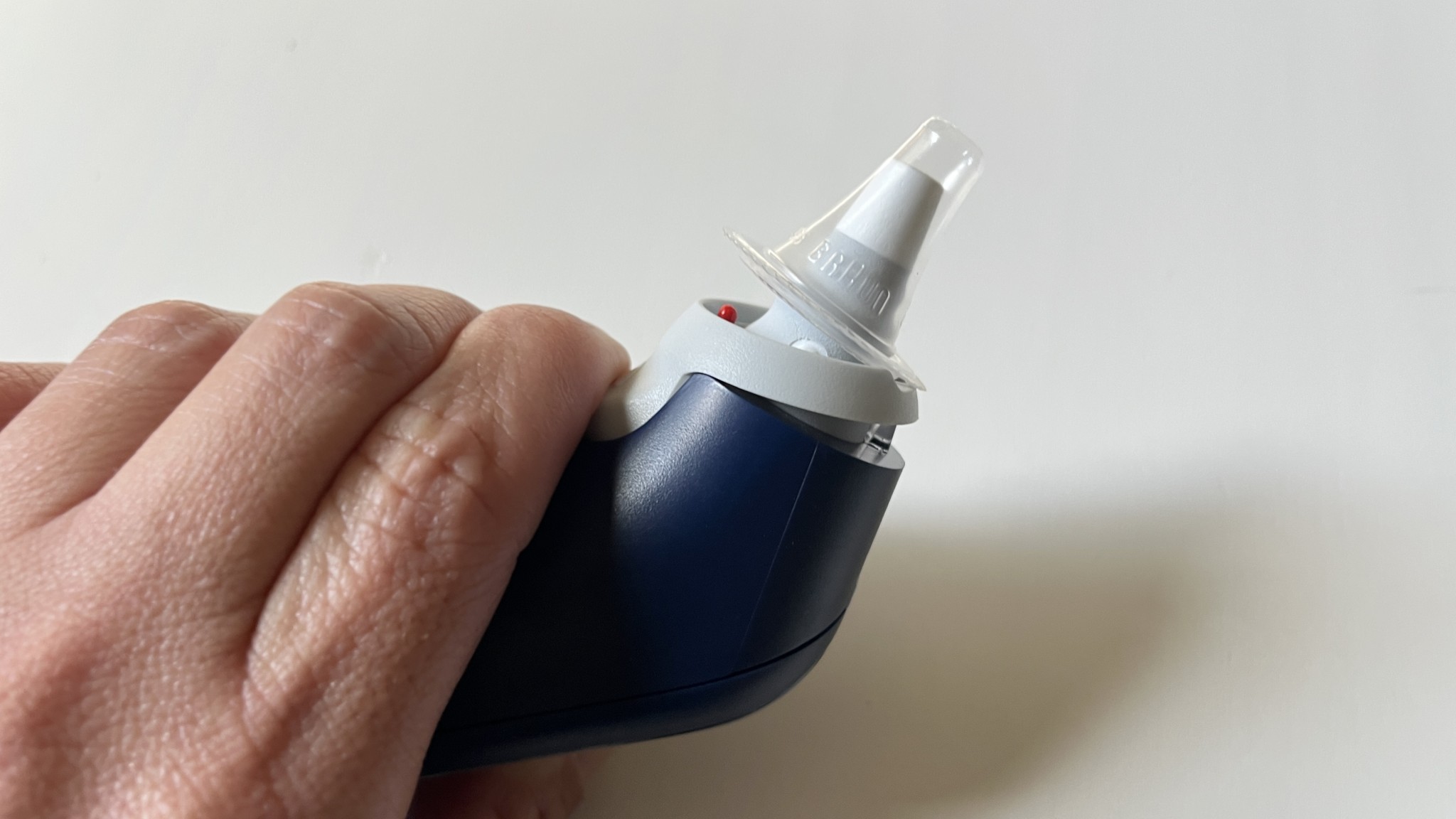 Since you have to pull the ear back, this thermometer can be a little tricky to use on yourself or on kids who won't stay still.   Credit: Lissette Velasquez