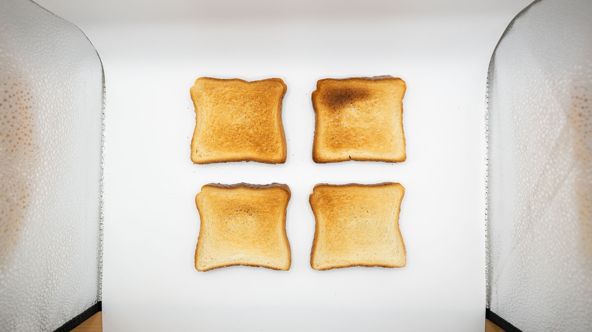 The Mini produced moderately even toasted bread with minimal variation between cycles. We noticed only slight variations in shade between the top and bottom of each slice, which is exceptional for a non-convection model. The smart heating elements automatically adjust their power to compensate for the natural heat rise in the cavity, resulting in more consistent results than we typically see in smaller ovens.