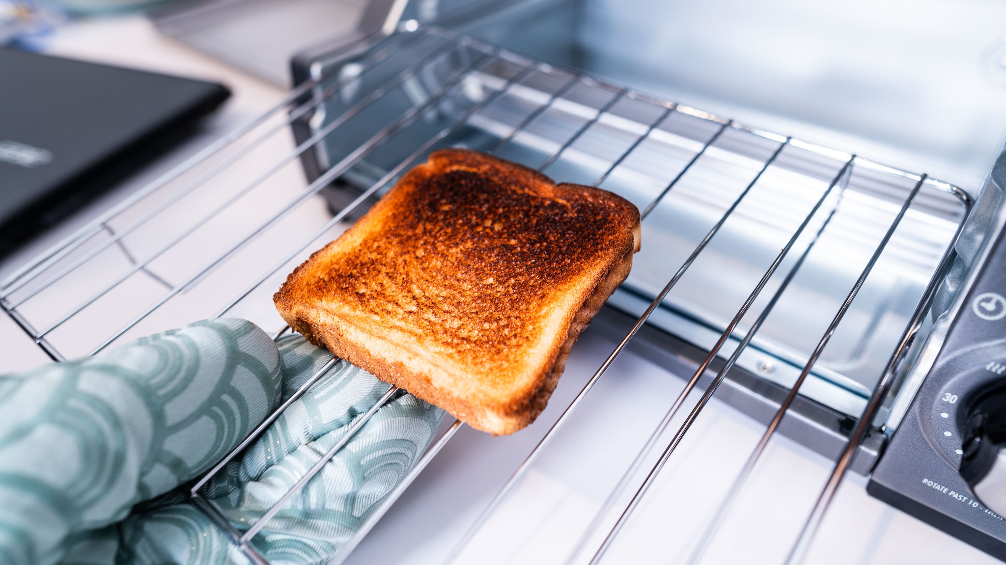 The toasting itself produced acceptable results, though not exceptional. We noticed that it tends to toast more intensely toward the back of the oven, creating an uneven browning pattern on single slices. When we tested with two slices side by side, the disparity became more pronounced, with the slice closer to the heating elements developing darker spots while other areas remained lighter. This inconsistency meant we needed to rotate our bread halfway through for more uniform results — not ideal when you're rushing through your morning routine.