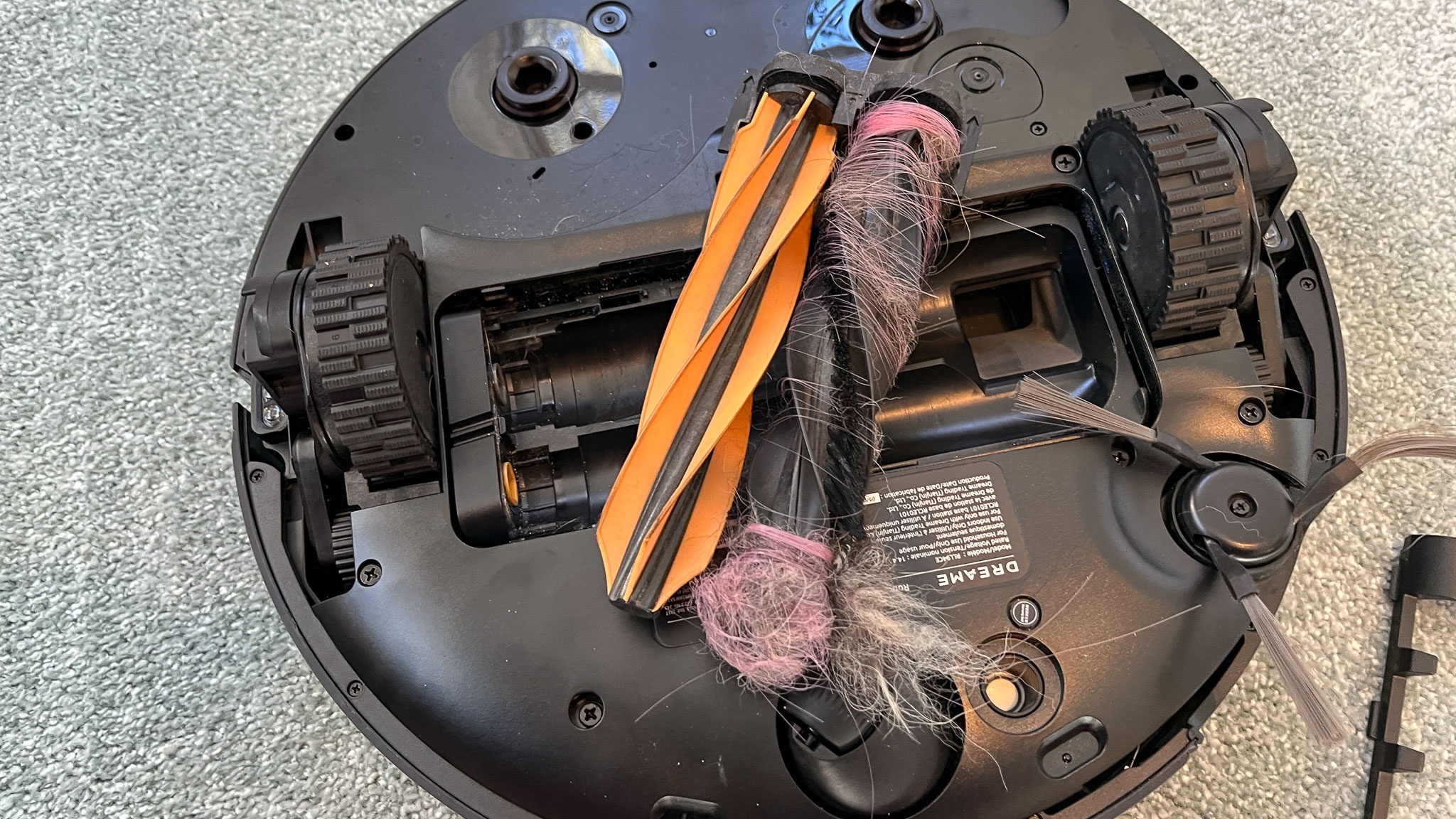 The vacuum didn't catch much hair around the arm sweeper, and only a small amount wrapped around the main brush roller, making cleanup mostly straightforward.