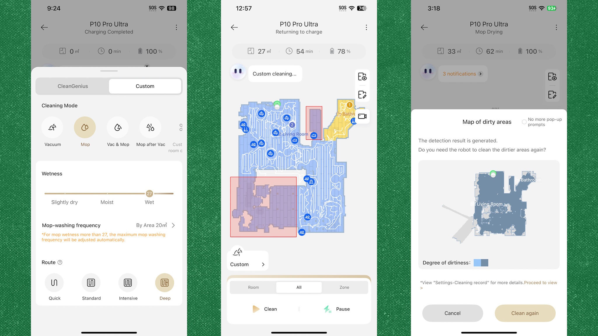 Overall, navigation is capable but not particularly smart. The P10 Pro Ultra can map and move through a home effectively enough for routine cleaning, but it lacks the polish and reliability needed to feel completely hands-off — a reasonable tradeoff given its much lower price point.