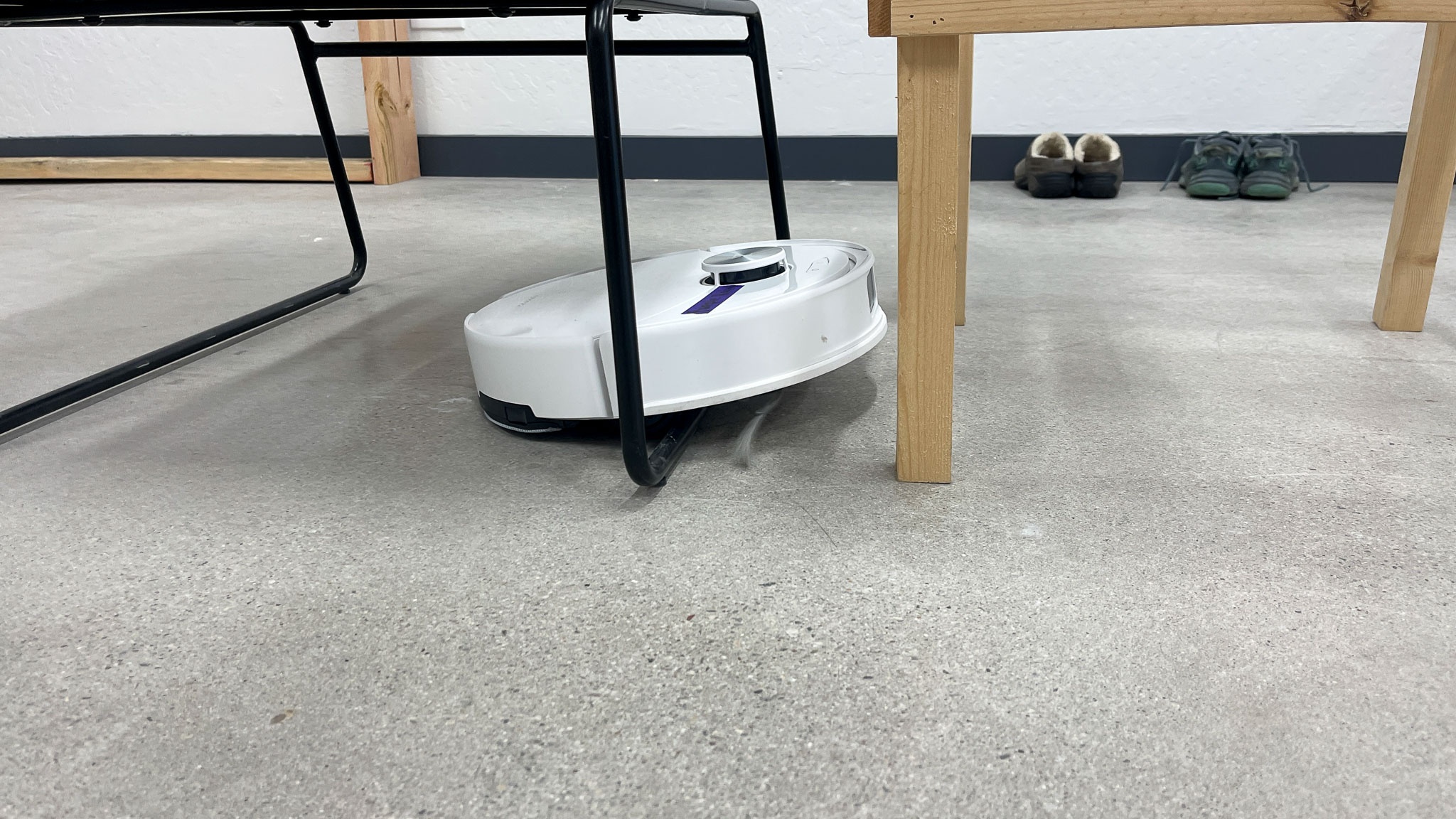 Navigation was a letdown compared to other Roborock vacuums. Despite manufactuer claims of advanced navigation tech, the robot detected only about 40% of obstacles during our testing and frequently tangled with cords or got stuck on furniture legs. While it handles larger objects and open layouts fine, smaller items or cluttered areas will trip it up. It even vacuumed over simulated pet messes — a clear warning for pet owners.