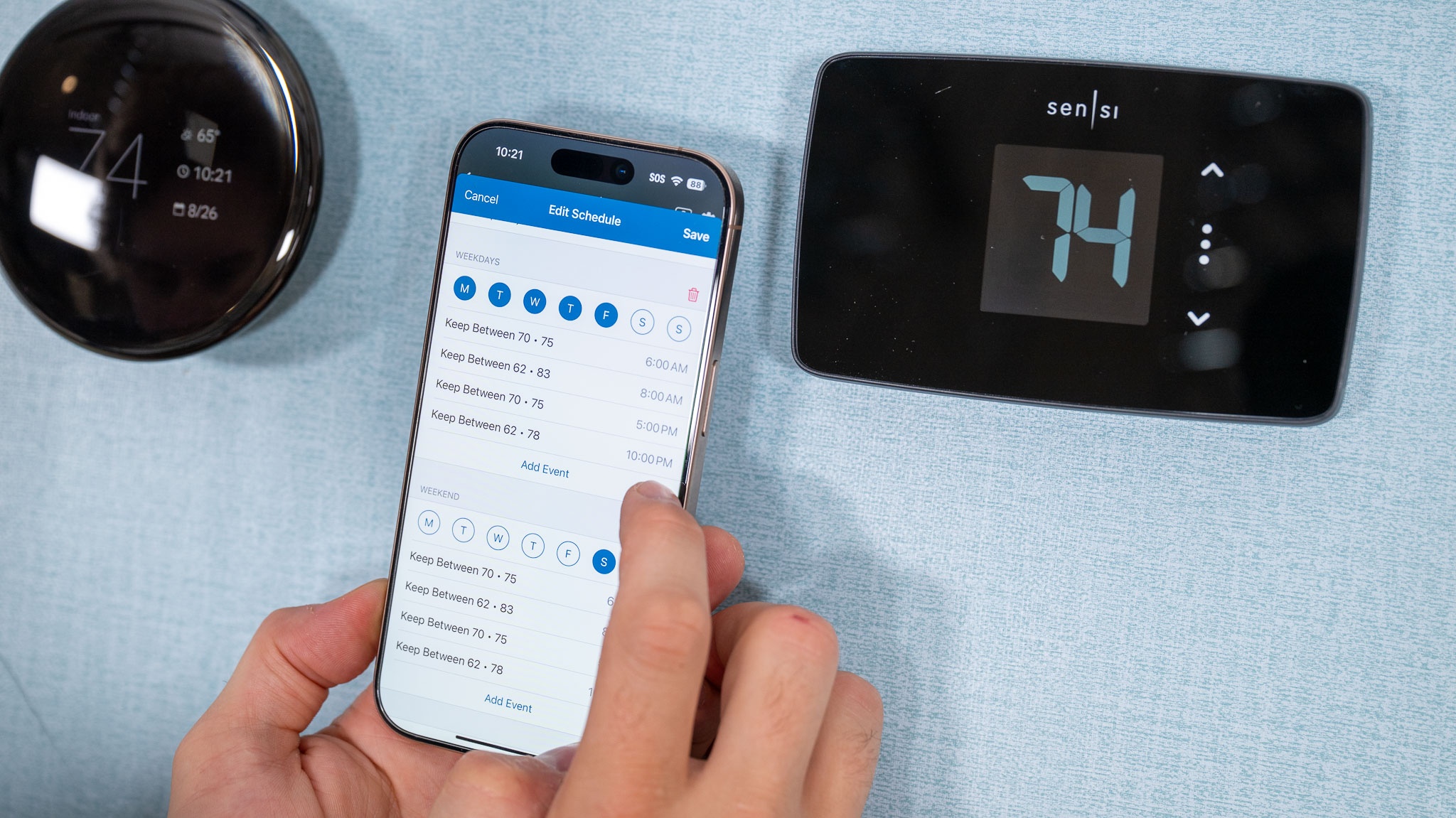 It's easier to get into more detail when you adjust it using the app, but even the controls there are pretty basic. The app prompted us to create a Sensi account and then set up the thermostat to add scheduled events, allowing it to change automatically throughout the day.