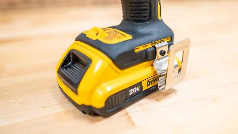 The DeWalt Max features a belt clip, ½" chuck, and one of the brightest integrated work lights we came across. The light is located below the handle and remains on for approximately 20 seconds after the button is released.