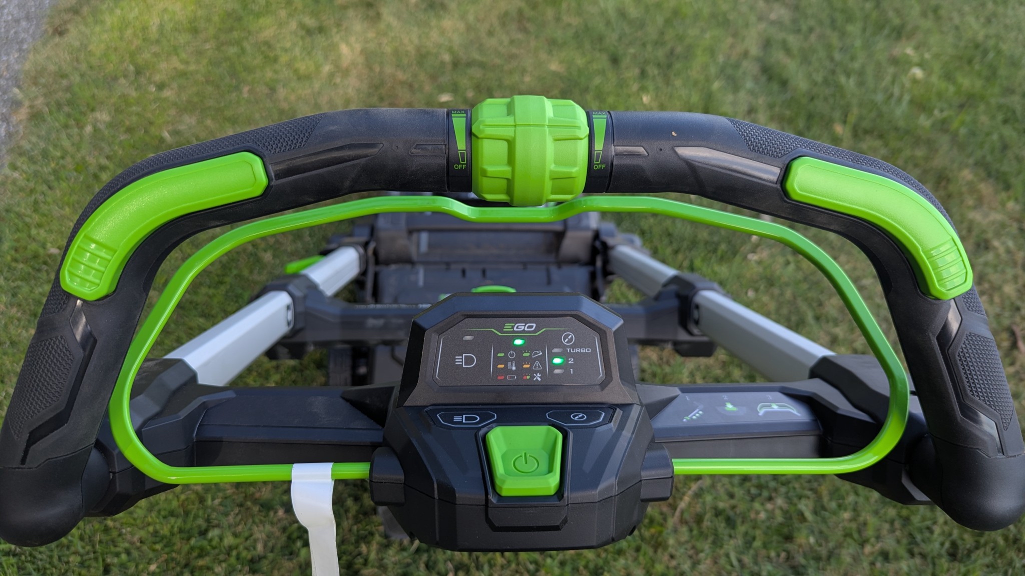 The Ego 2236 is incredibly easy to start and stop, and requires very little effort to use. It struggled significantly during maneuverability testing; it was difficult to navigate around obstacles or perform tight pivot turns.