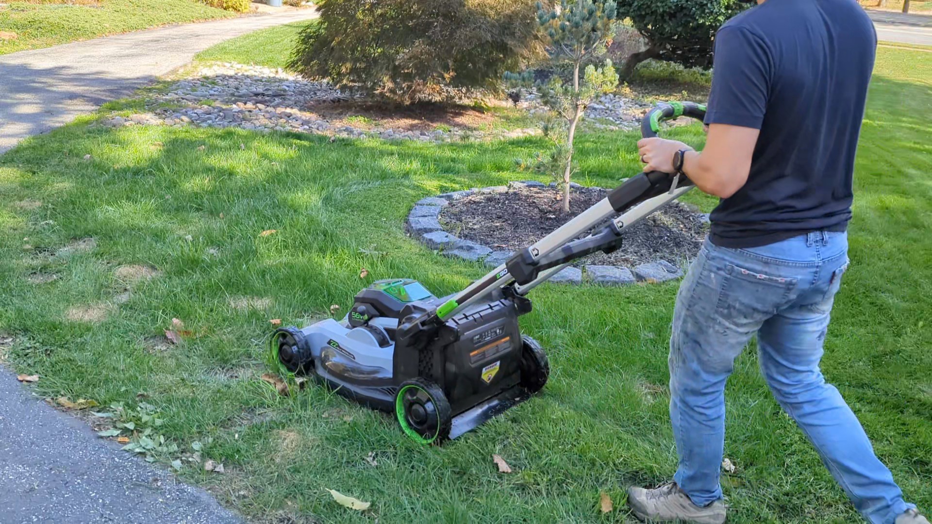 If you demand the best mowing capabilities out of your mower, look no further. The Ego excels at the raw cutting, bagging, and mulching, and was passable across different terrain types.