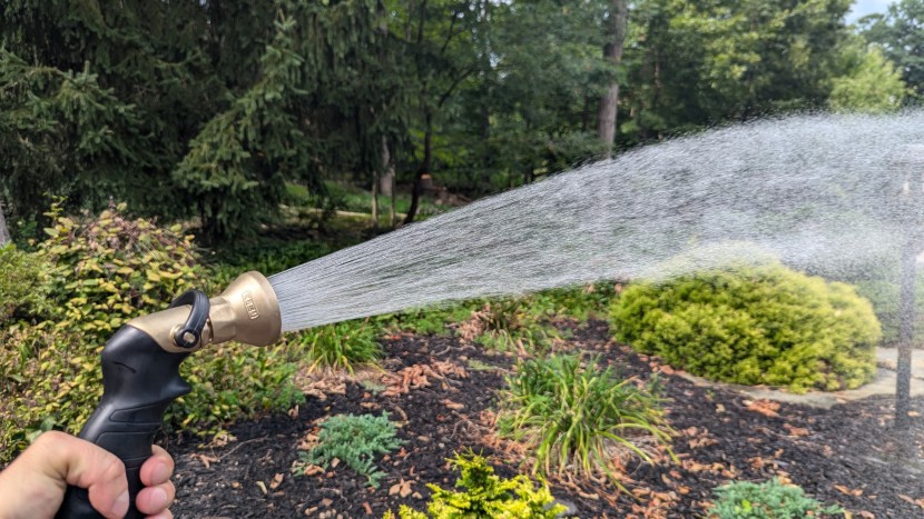 It is immediately clear that the Eley has some of the highest construction quality and material standards of any hose we tested. Though we didn't factor it into our score, even the packaging and instructions for this hose were high quality. The hose is also made from thick materials, including solid brass fittings, which are much more likely to last than thin-coated fittings found on other models. The nozzle has separate screen attachments and spray tips for changing the water, as well as solid brass fittings and construction. If you need a hose nozzle that might survive the apocalypse — this is probably it.