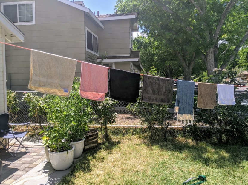 To test drying time, we threw all the products into the wash, took them out wet, and immediately hung them on a drying line outside. Our current testing conditions of 100 degrees in Bishop, California, are about as dry as it gets. In general, these towels dried relatively quickly. We checked back in on their progress after 30 minutes and again after another 15 minutes had passed (at 45 minutes). We rated each towel on a scale of “basically dry” to “slightly damp” to “mostly damp.” Most were nearly dry after 45 minutes, though when we brought them inside, a few continued to feel damp overnight.