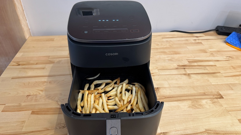How the Cosori TurboBlaze Air Fryer performed in our taste testing: The Cosori TurboBlaze impressed us with its ability to cook everything we threw at it to near perfection. The fries had a soft, buttery interior, and as our taste tester noted, “these tots were truly exceptional.” It also gave both the chicken wings and salmon a lightly crispy skin while maintaining plenty of succulence inside.