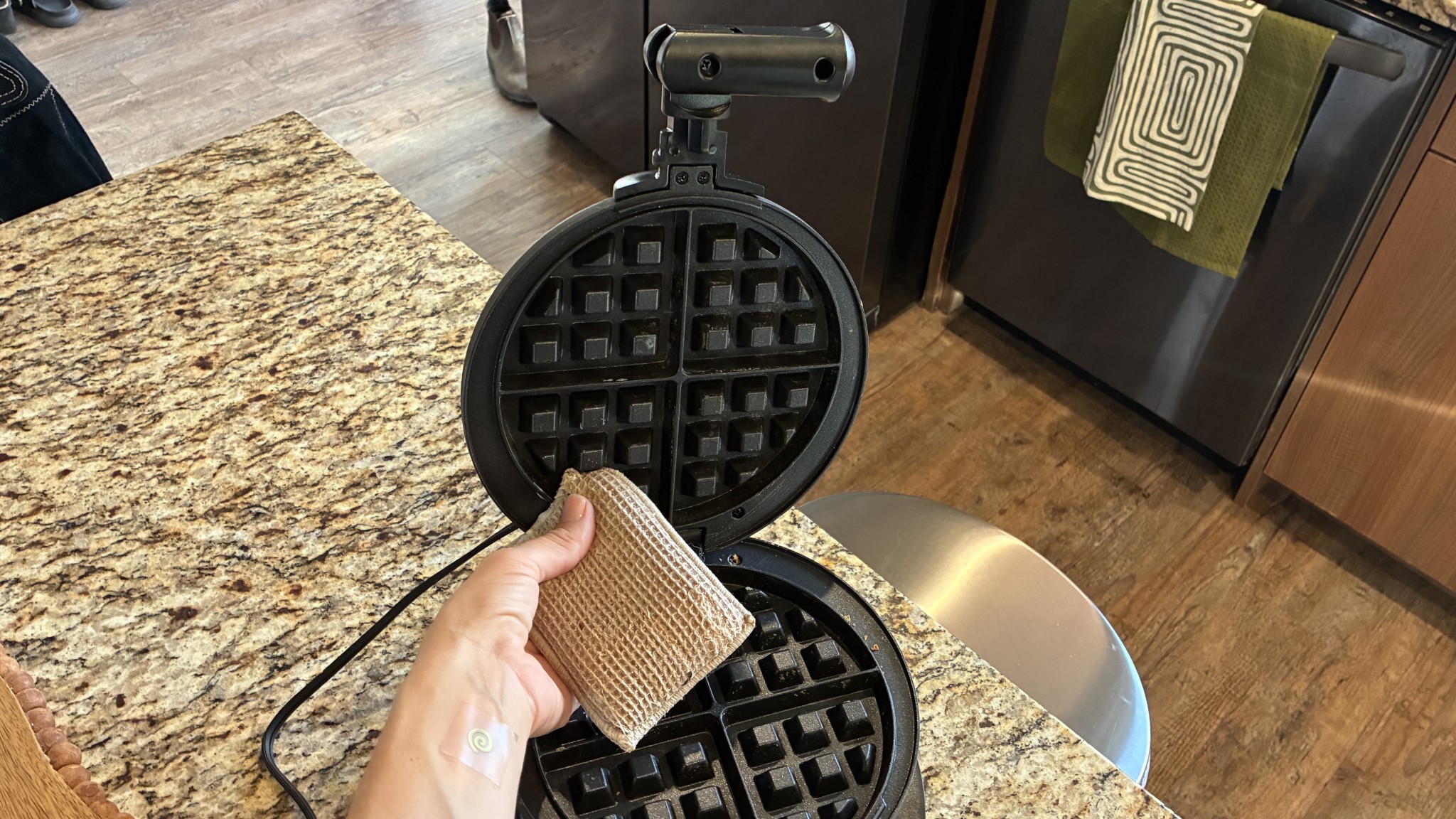 The Hamilton Beach Flip Belgian is a standout in the clean-up metric, as it has removable, dishwasher-safe plates. Knowing how easy clean-up would be meant that we found ourselves reaching for this waffle maker again and again on busy school mornings. The manufacturer does state that plates are not to be washed on the sanitize setting, as high heat could damage the non-stick, so we mostly hand-washed ours.
