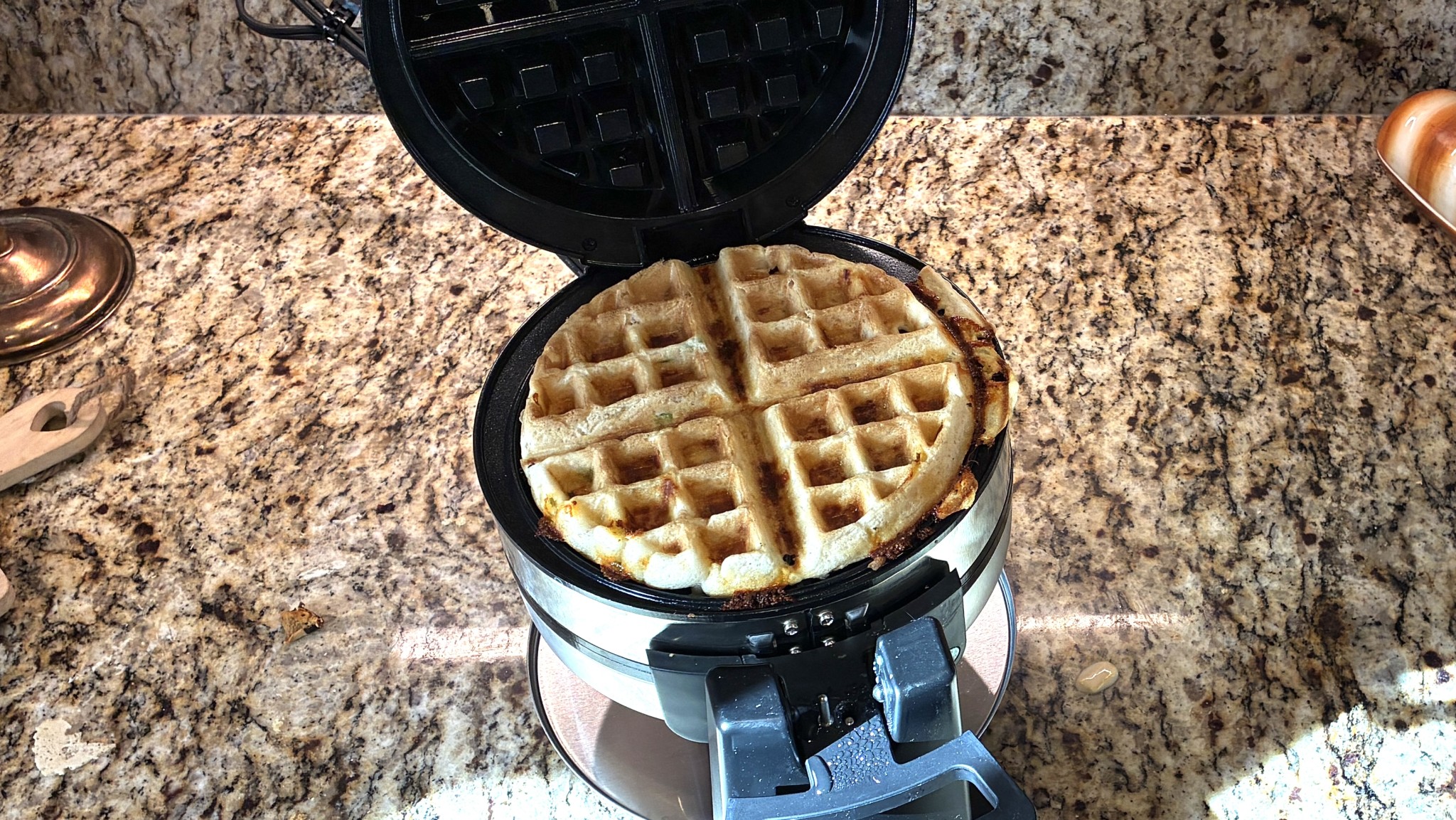 The Hamilton Beach cooking a beautifully uniform, gluten-free waffle Credit: Katie Brown