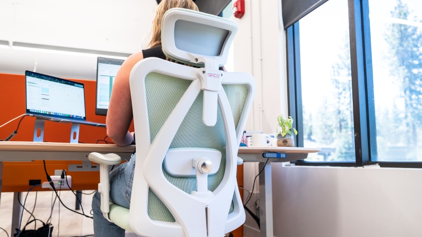Our lead tester, Rachael Lamore, tests the Sihoo M18 for adjustability and ergonomics.